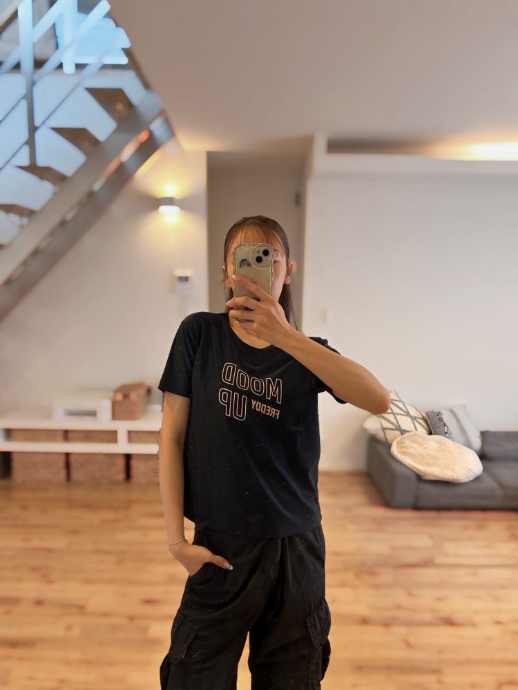 BAILA BAILA vol.36 DVDの中でゆりこさん着用のTシャツ🖤 私はXSにしてみました! 身長163cmですが、いい感じです! あ…でもタイト目のパンツやレギンスと合わせるならSがいいかな?😳 インスタイルはこんな感じ。 でもきっと腕上げたら裾はすぐ出てきそう… サイズ選びのご参考にしてくださいっ🫶 クーポンコード:FR901(FREDDY商品購入時にクーポンコードを入力していただ...